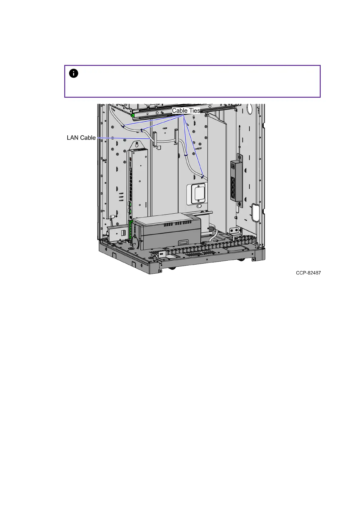 2. From the corner cable access hole, route the cable down the Core Cabinet wall and