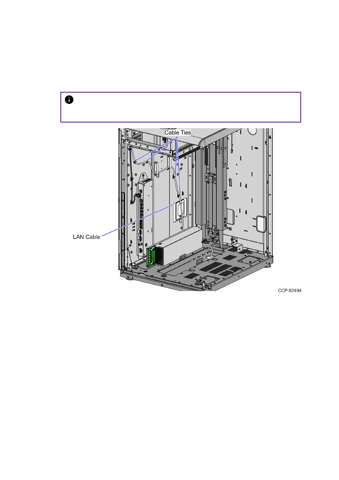 1. From the corner cable access hole, route the cable down the Core Cabinet wall and
