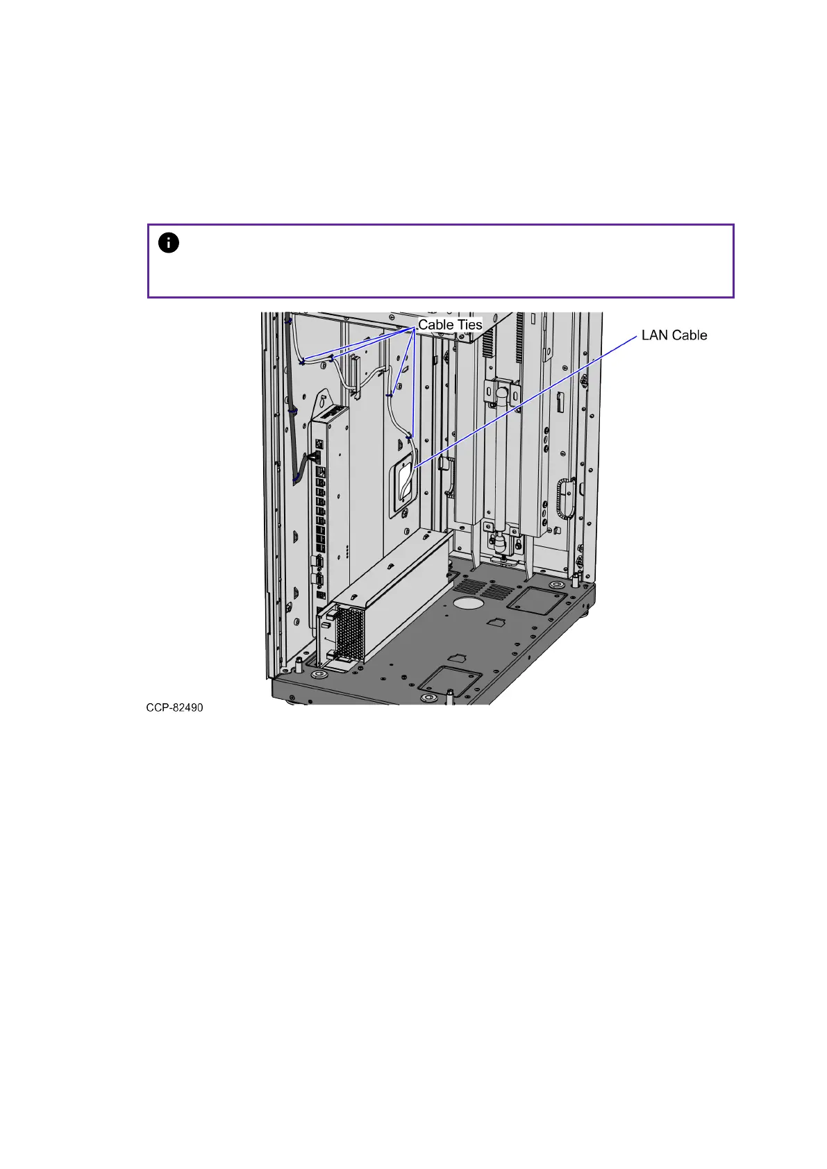 1. From the corner cable access hole, route the cable down the Core Cabinet wall and