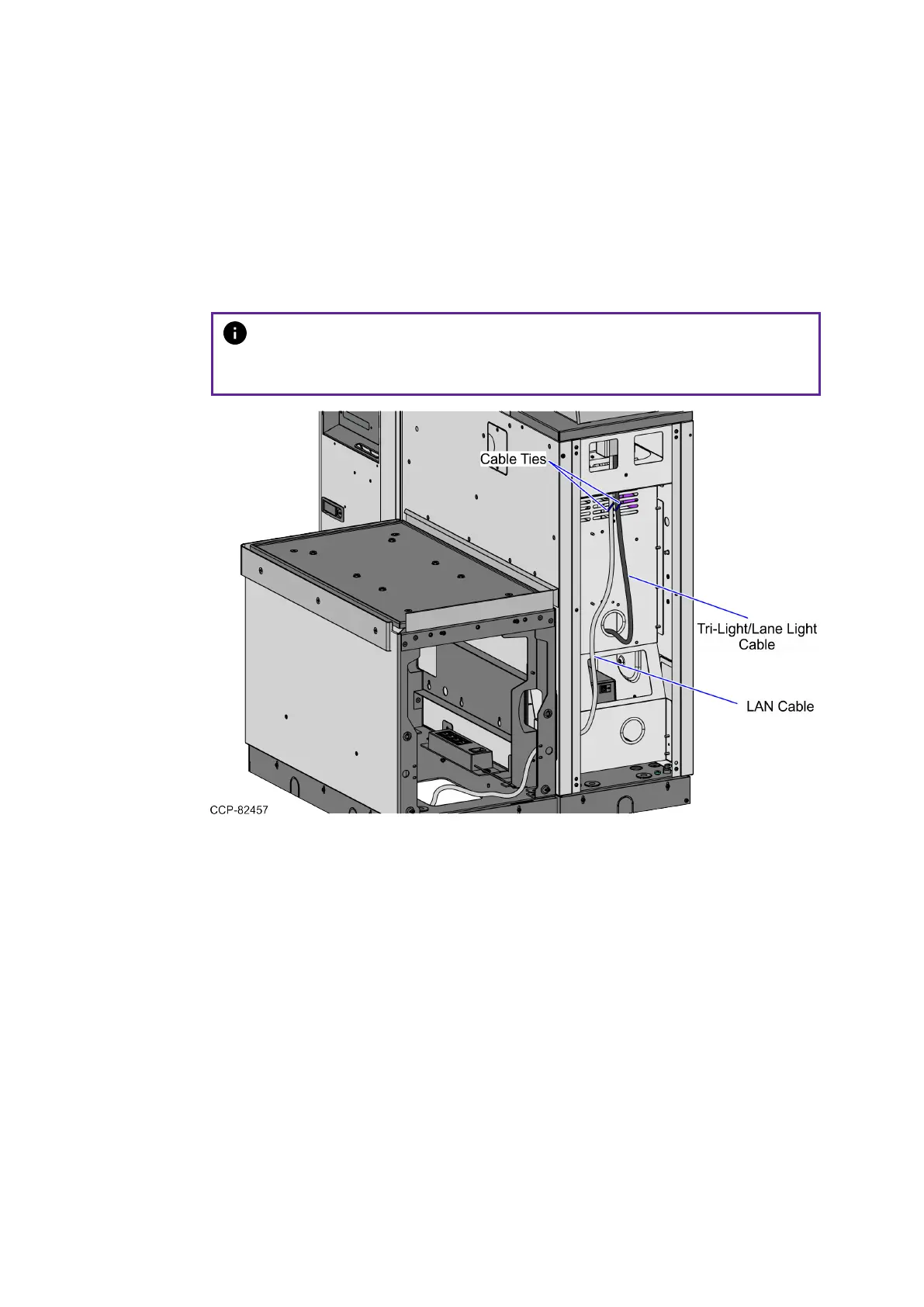 To route the Tri-Light/Lane LightCable and the LAN Cable in the 7357 unit, follow these