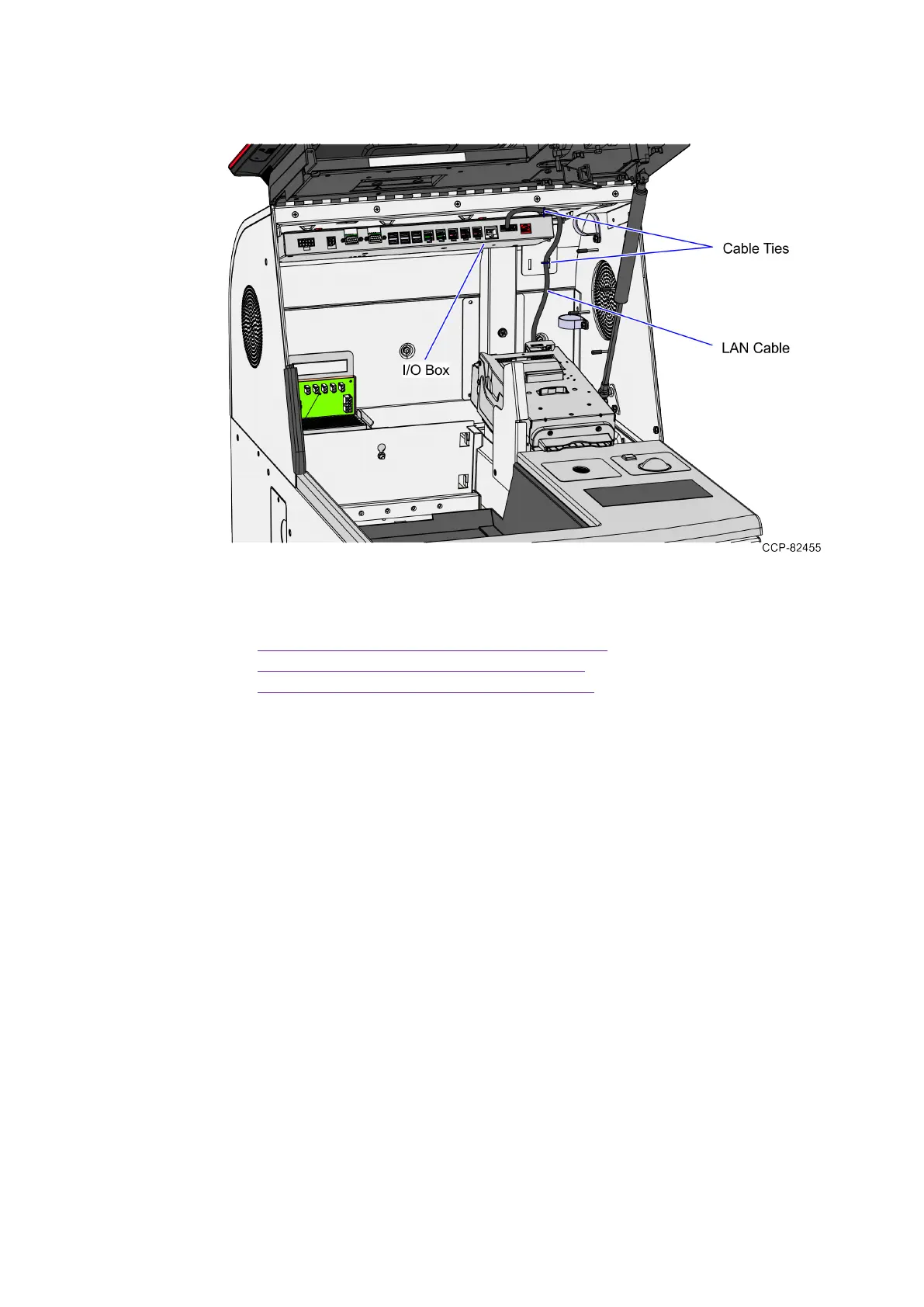 b. Secure the cable to the Upper Cabinet frame using cable ties.
