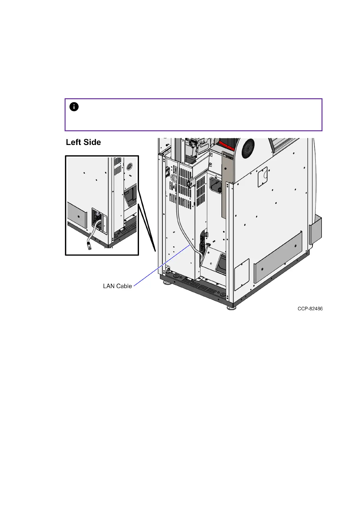 The LAN Cable can exit either through the left or the right side cable exit