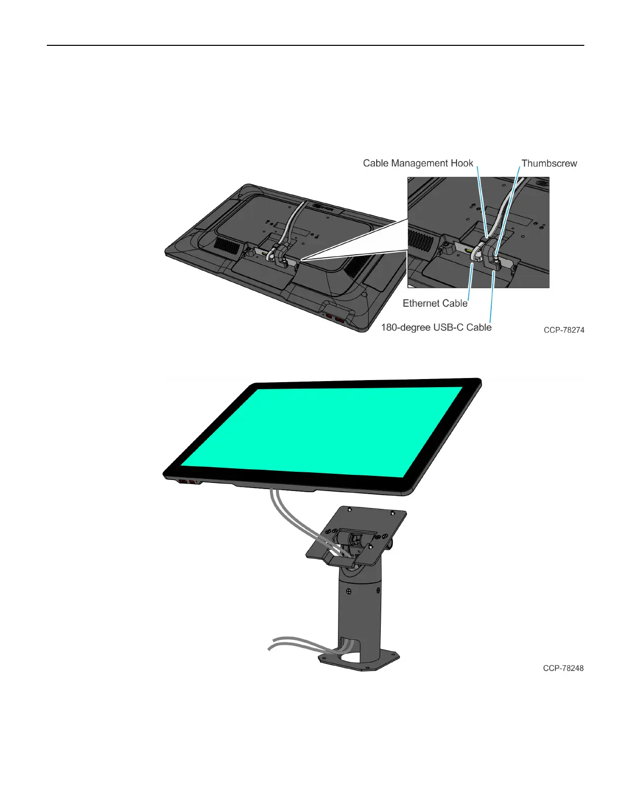 b. Connect the 180-degree USB-CCable and tighten the thumbscrew.