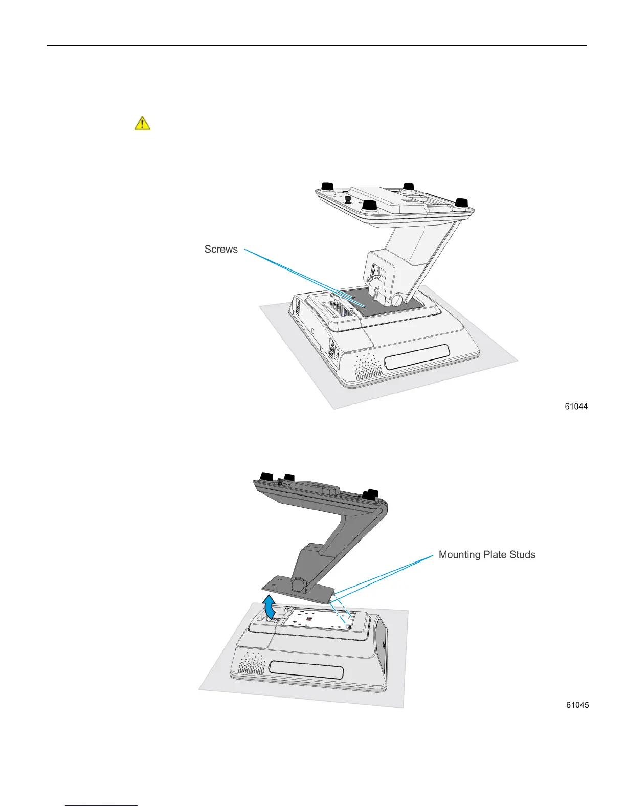 3. Rotate the P-Series Stand and remove the Mounting Plate Tabs (2) from the