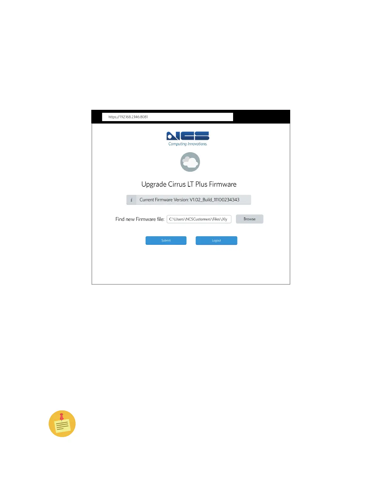 7. Click “Submit” to start the Firmware upload process. This can take up to 5