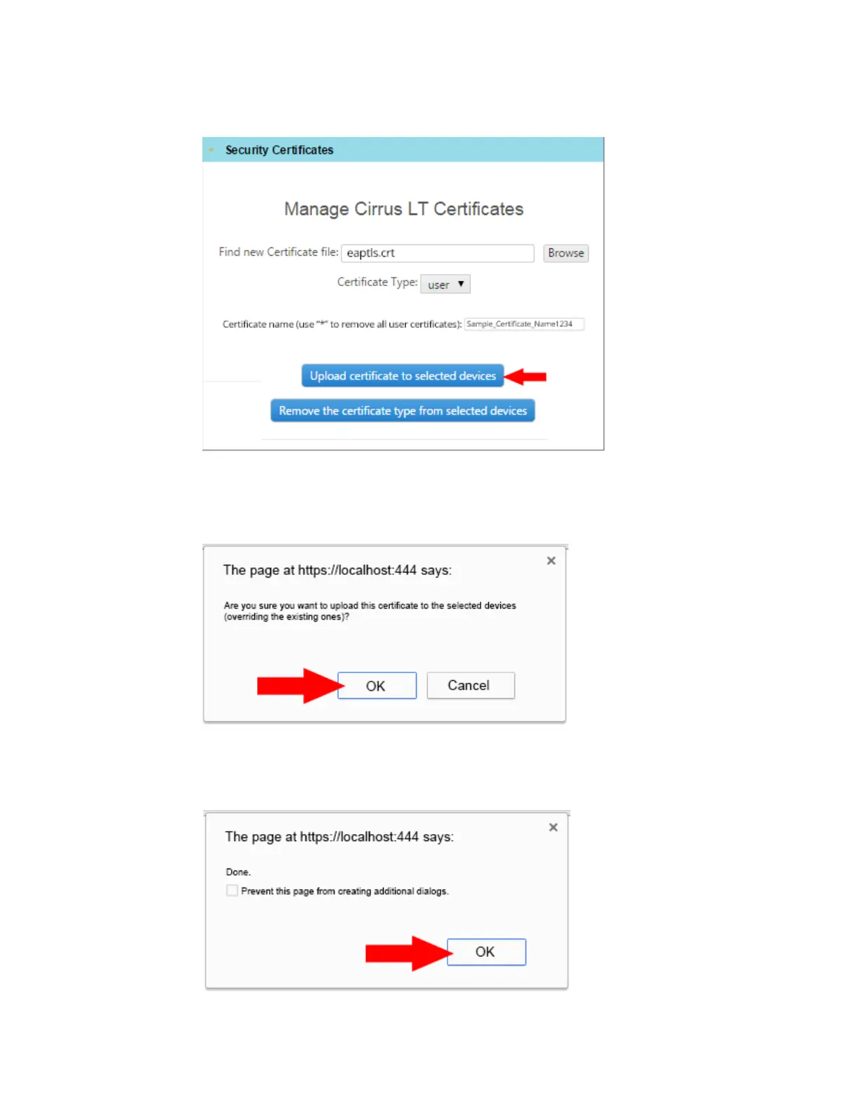 the Upload Certificate To Selected Devices button, as shown below.