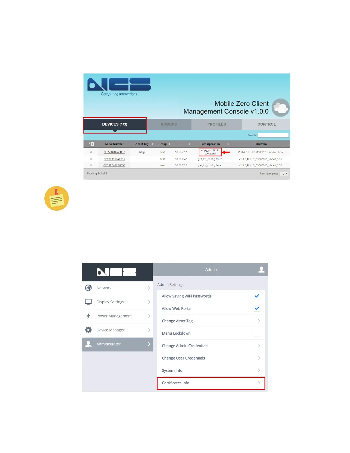 11. Go back to the Devices Tab. Under the Last Operation Column, confirm the