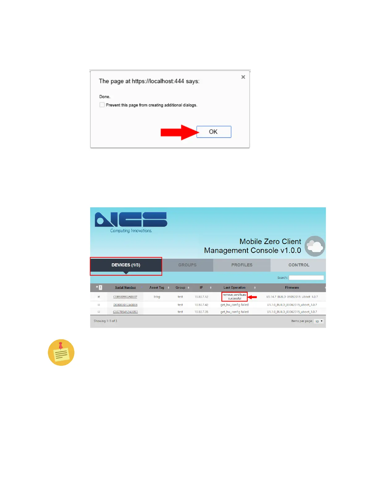 6. Go back to the Devices Tab. Under the Last Operation Column, confirm the