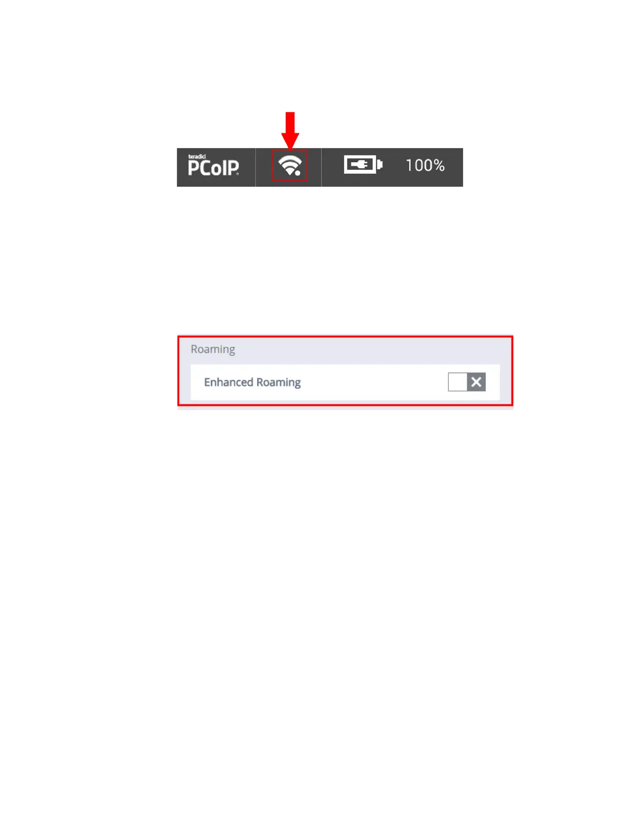 4. When Enhanced Roaming is enabled, a white dot appears next to the WiFi
