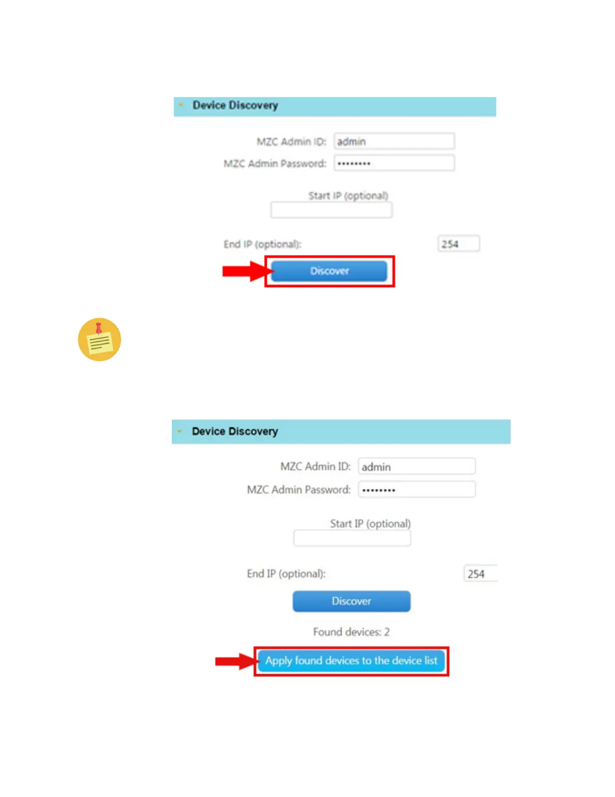 3. Click the Apply Found Devices to the Device List button.