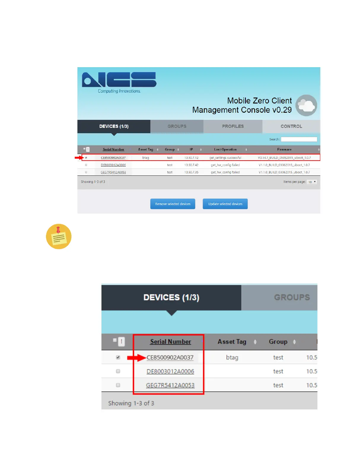 4. Navigate to the Devices Tab and select the unit (by ticking the check box)