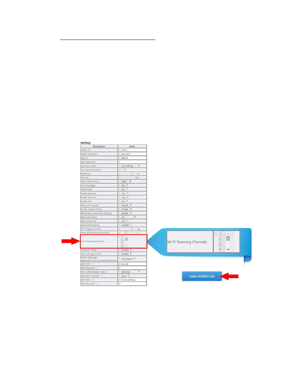 beled WiFi Roaming Channels. Here you can select the channels to scan