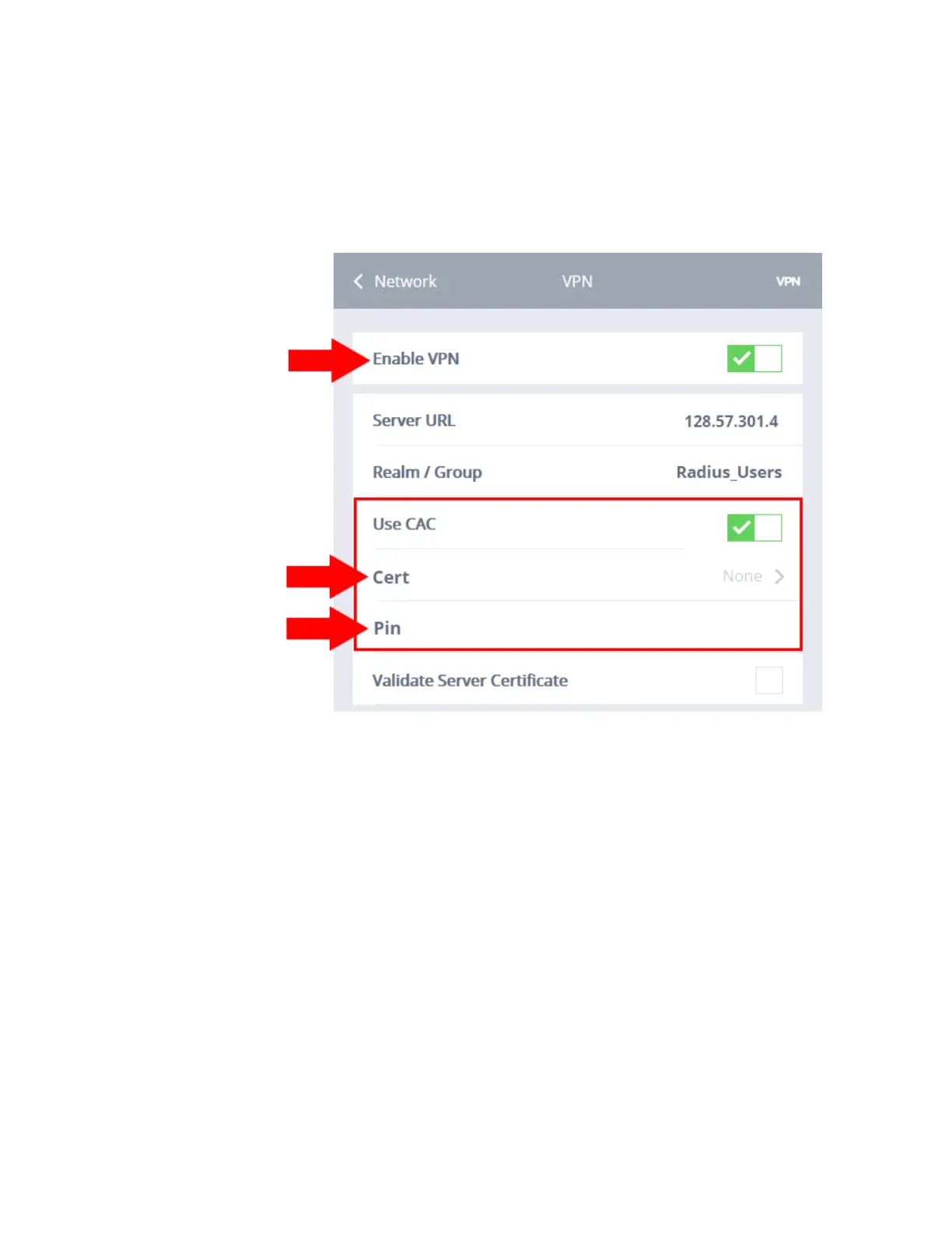 3. Click the Use CAC selection box. A green check mark signifies that Use
