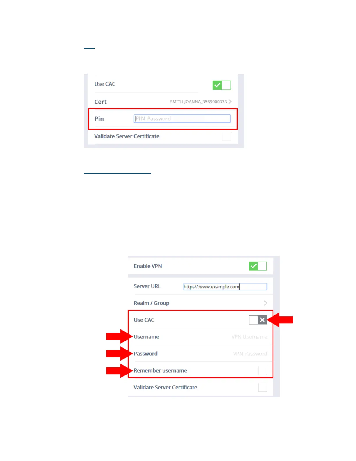 To disable Use CAC: