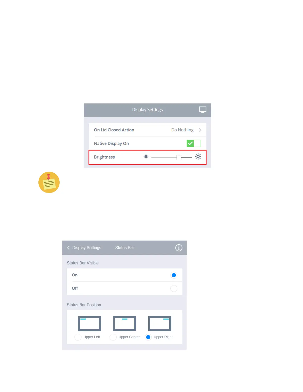 screen brightness. Moving the slide to the right will increase the bright-