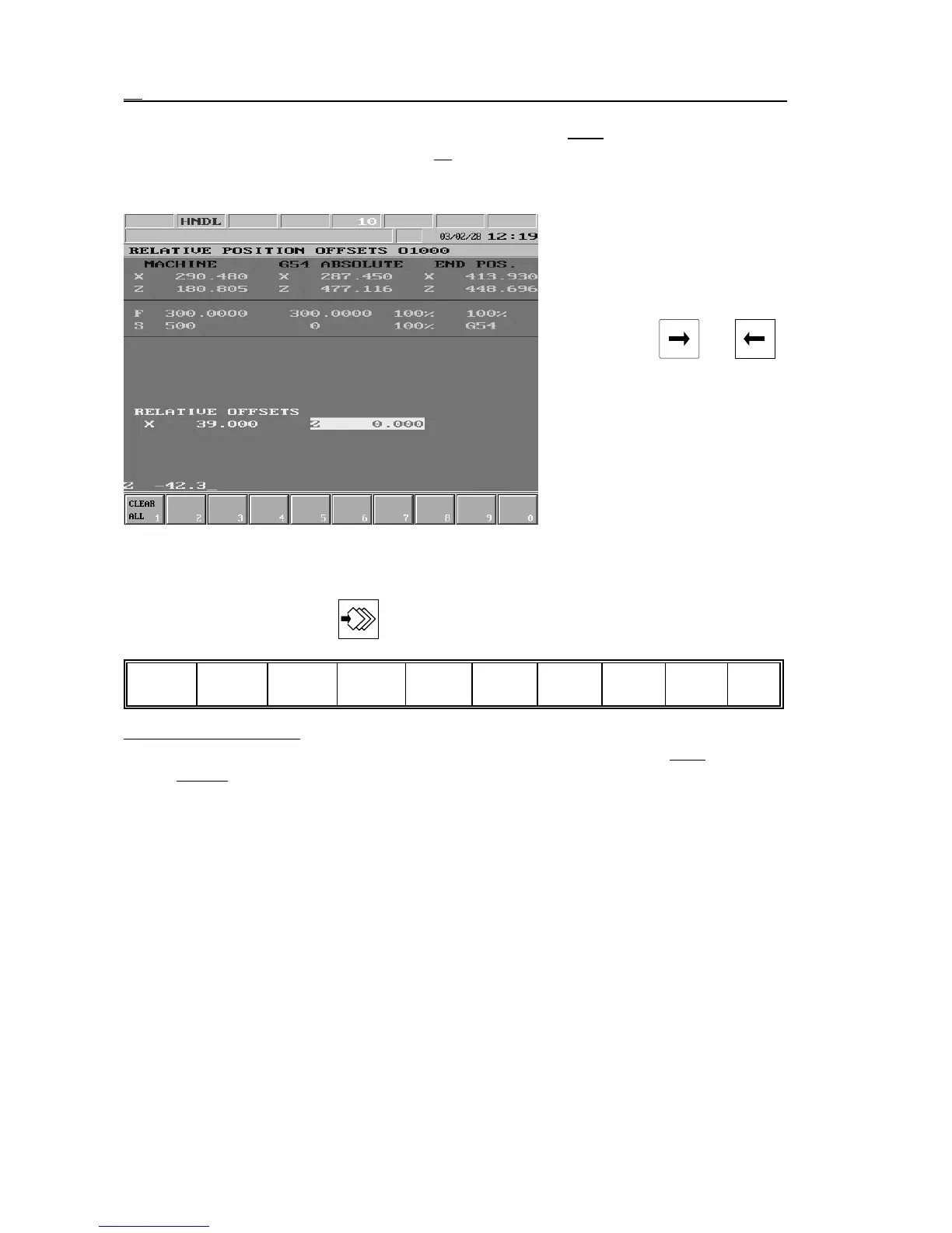 The following action menu can be activated to the RELATIVE POSITION OFFSETS screen