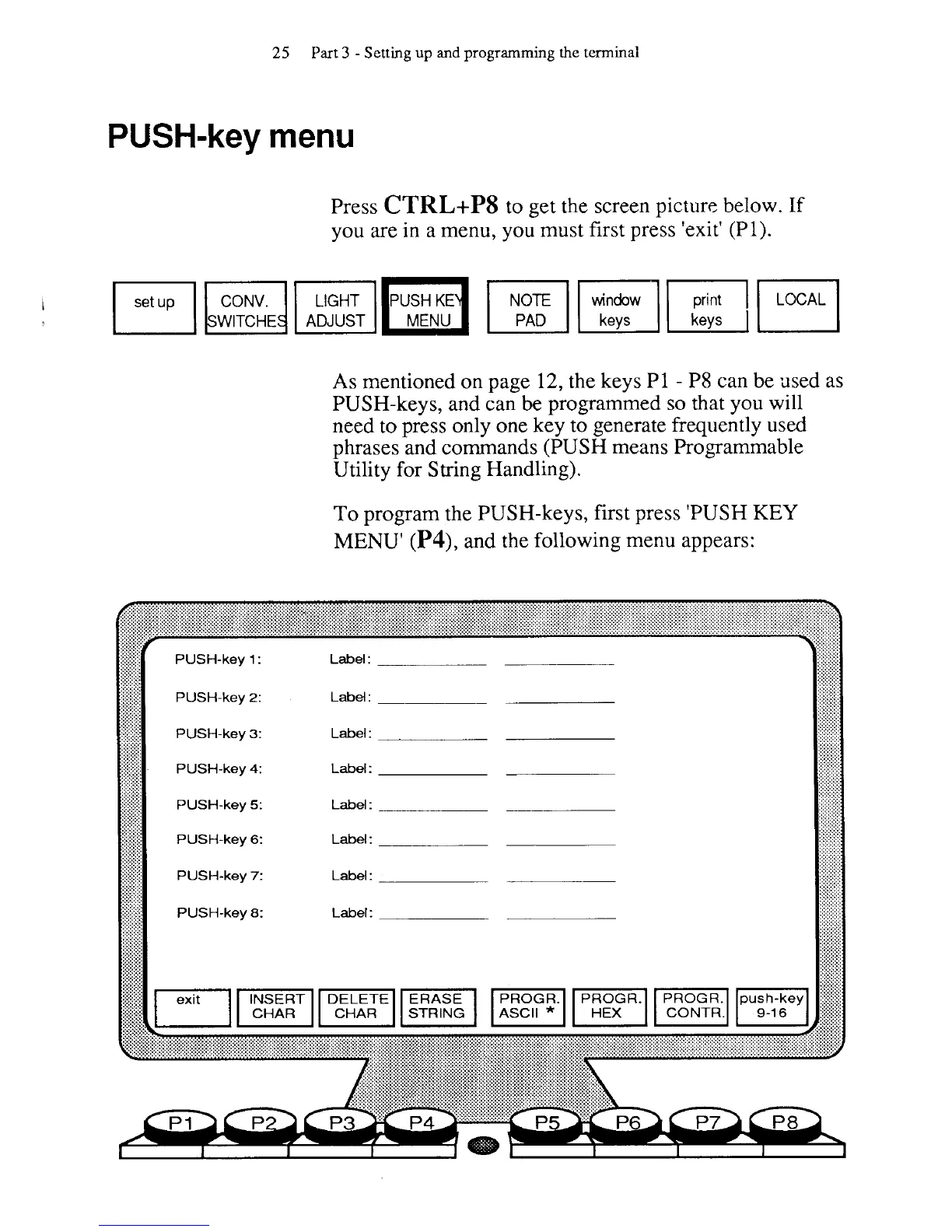 To program the PUSH-keys, first press 'PUSH