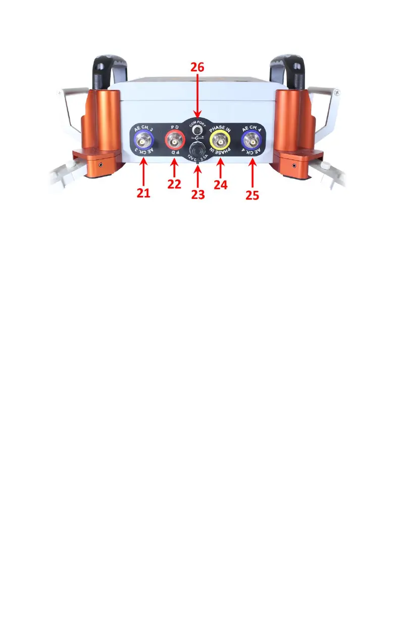 21- Acoustic channel 3: Input BNC connector for acoustic sensor #3.
