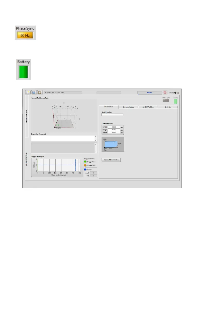 Battery icon: The battery icon displays the AE-150’s battery level.