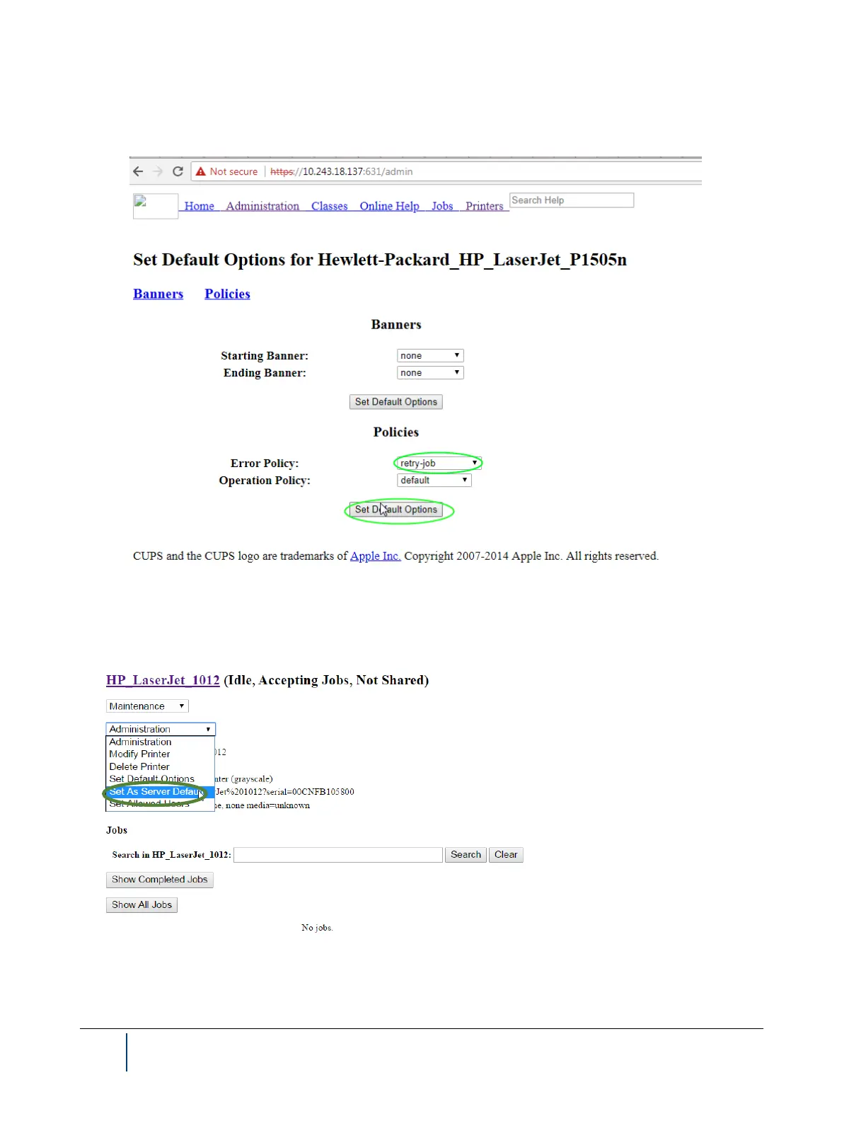 13. Set the printer as the default by clicking the Set As Server Default option from the Administration drop-