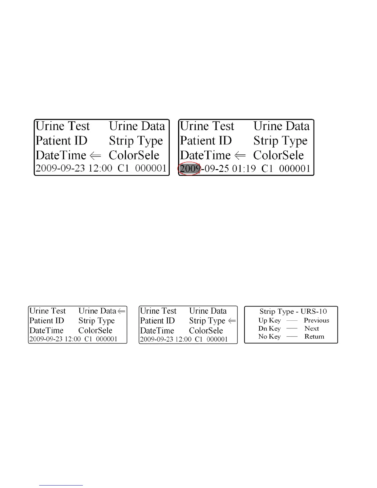 4. Press the “YES key to enter the Urine Data menu option.