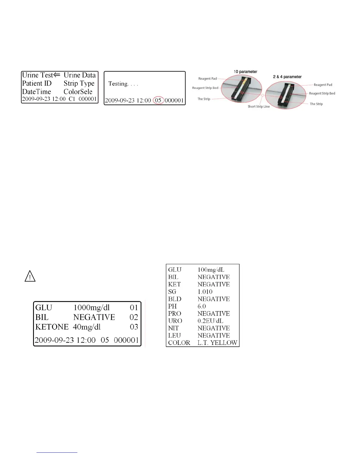 After the Testing Screen is entered (Fig. 4), the analyzer will give the user 5 seconds to dip the urine reagent strip