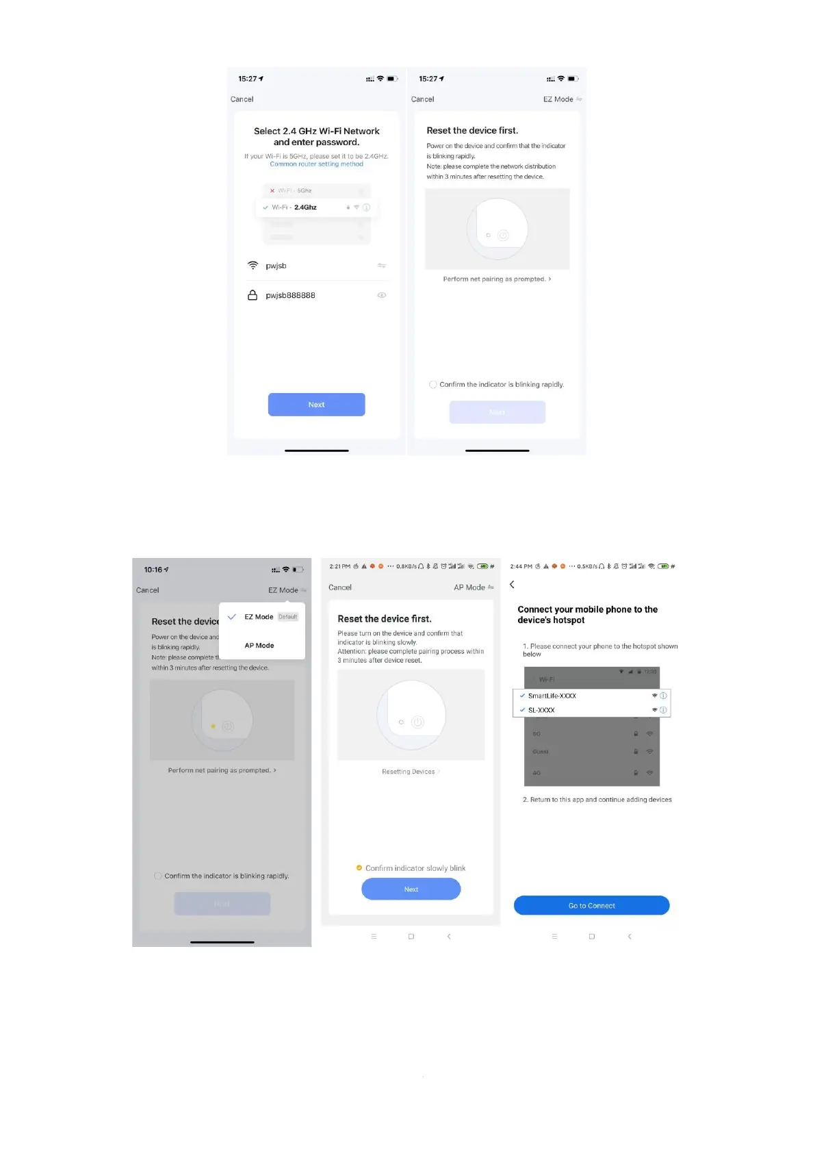 For examples, as pic 1 ”Smartlife_3C4A,”, Click for Connection, APP will automatically enter