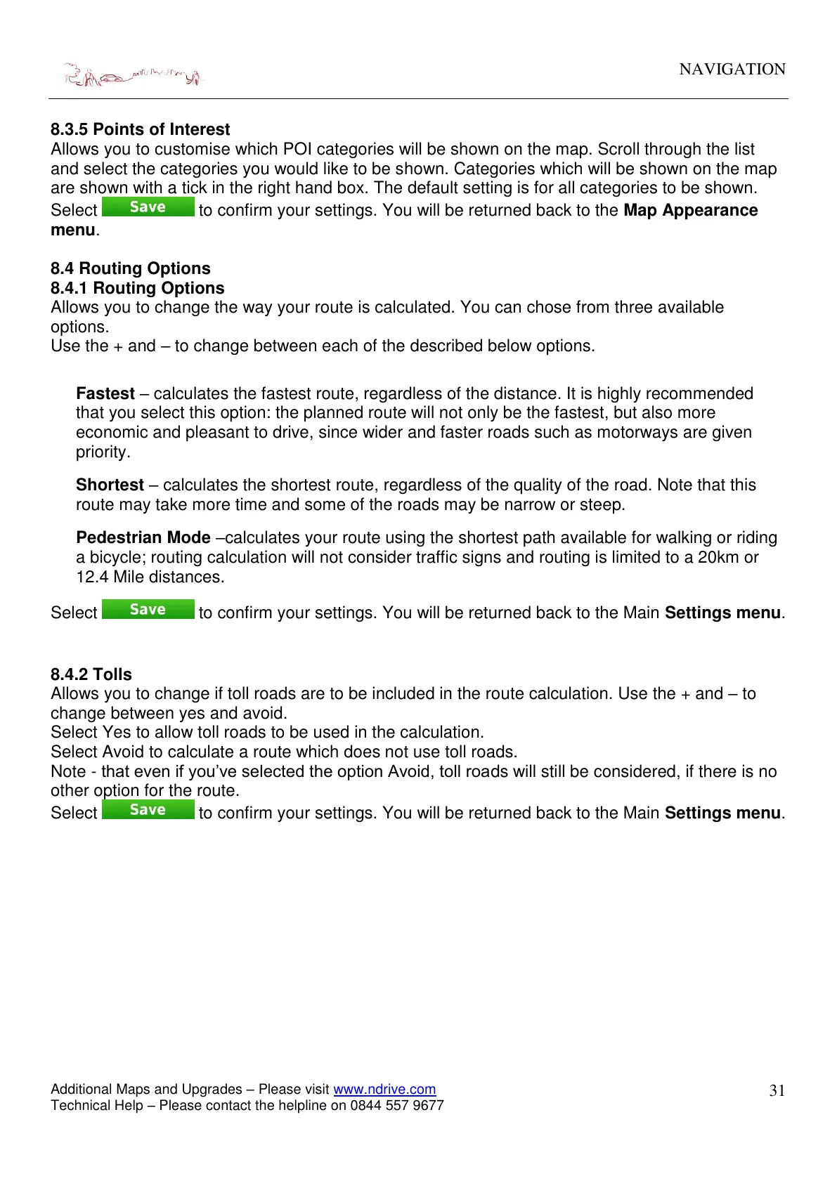 Allows you to customise which POI categories will be shown on the map. Scroll through the list