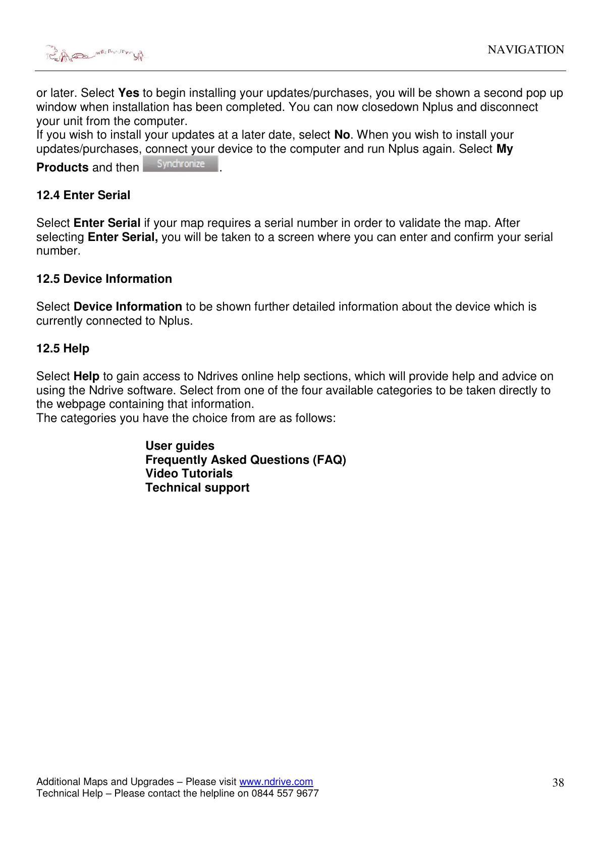 Select Help to gain access to Ndrives online help sections, which will provide help and advice on