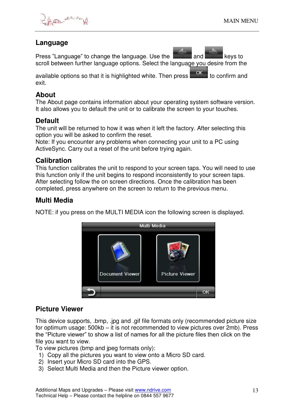 3) Select Multi Media and then the Picture viewer option.