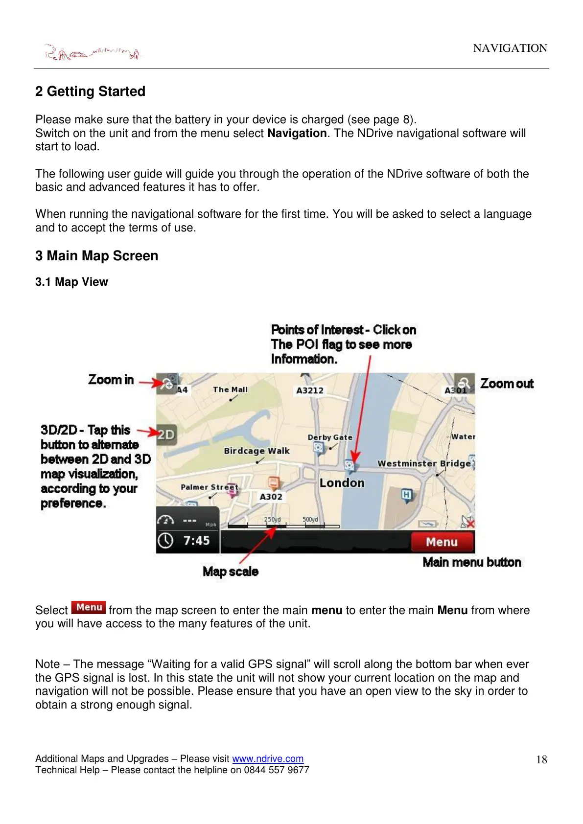 Switch on the unit and from the menu select Navigation. The NDrive navigational software will