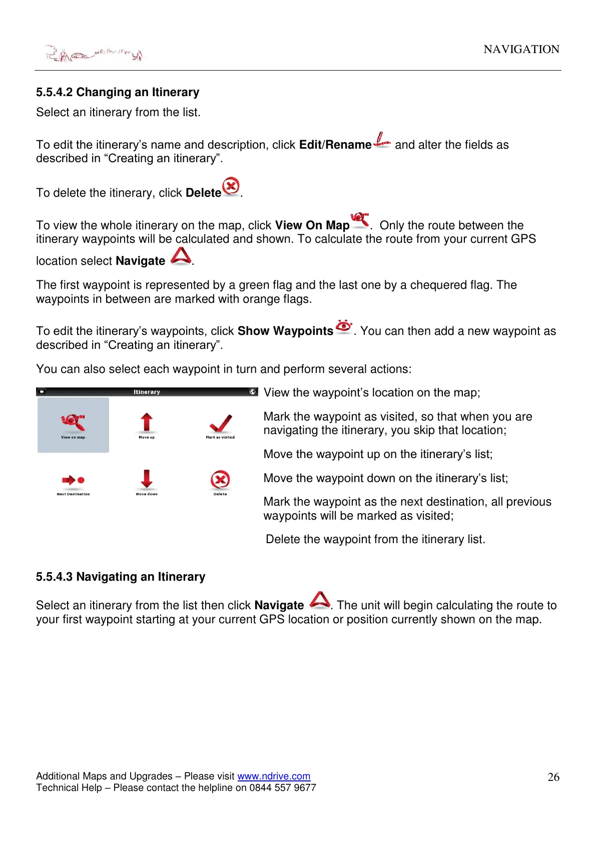 itinerary waypoints will be calculated and shown. To calculate the route from your current GPS