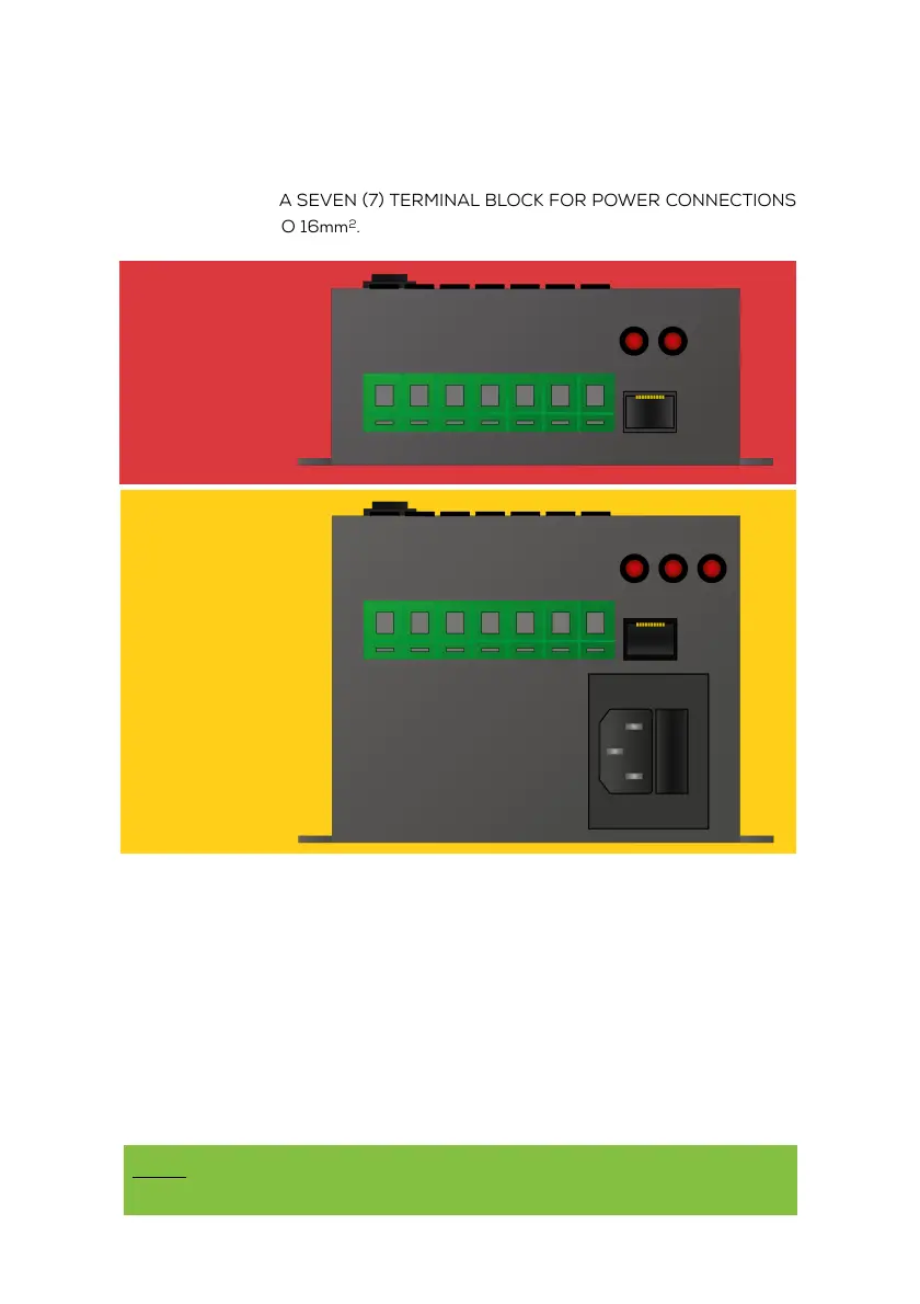 The device has a seven (7) terminal block for power connections