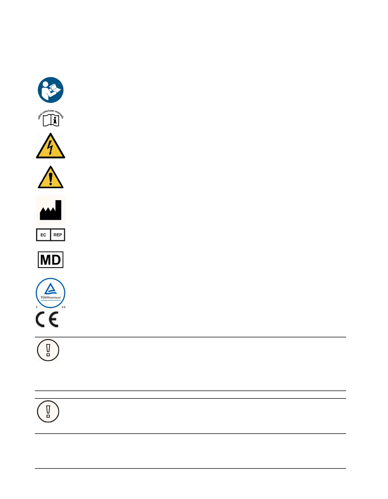 This symbol alerts the user that the user manual and translated copies are published on the NDS