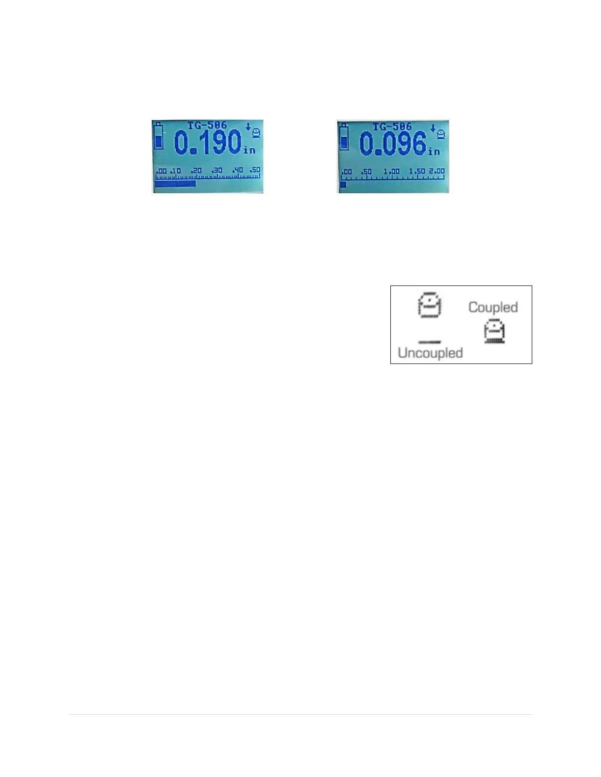 indicate the quality of the thickness reading. A “coupled” state is indicated by