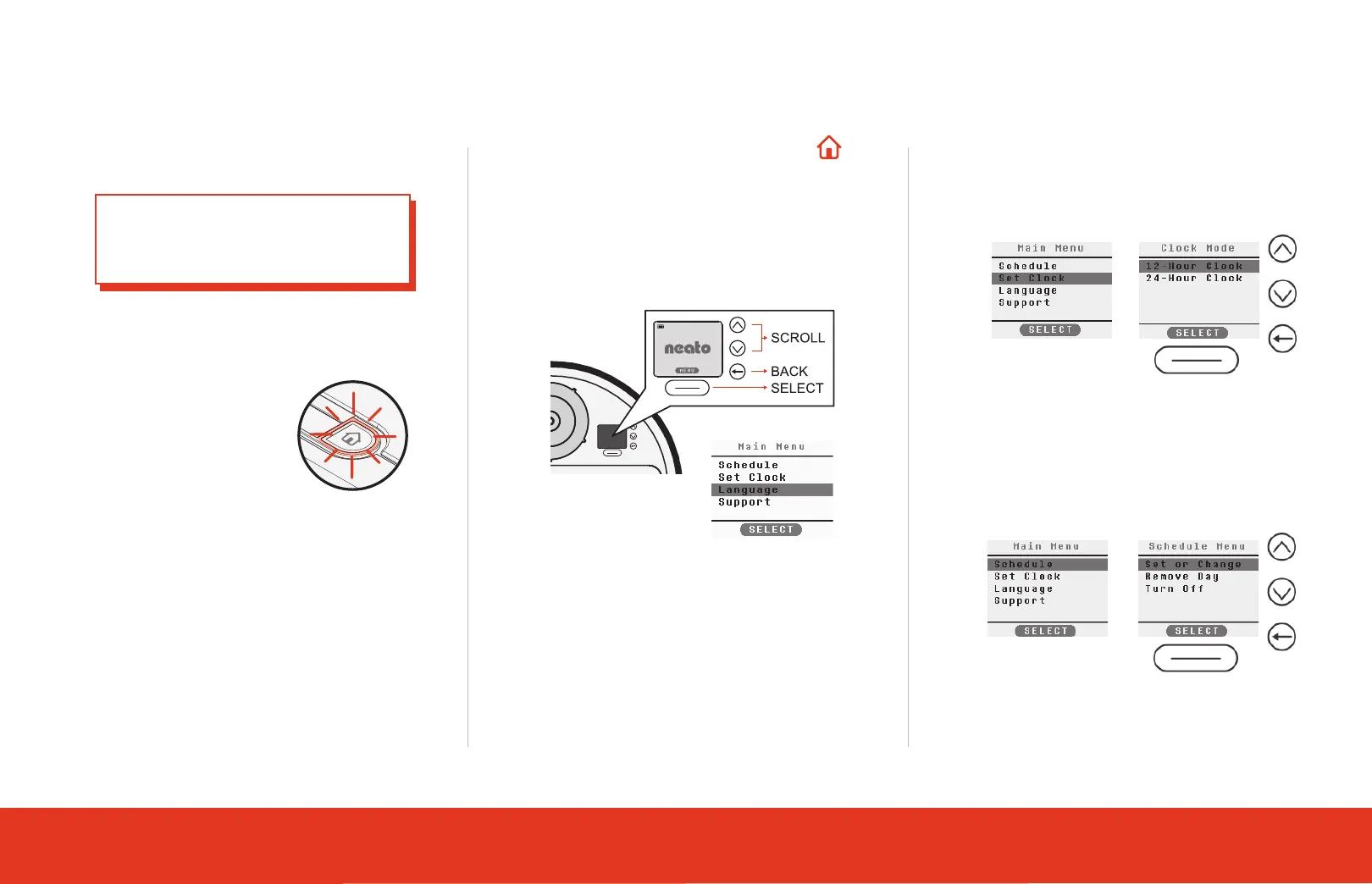 • Wake up Neato by pressing the