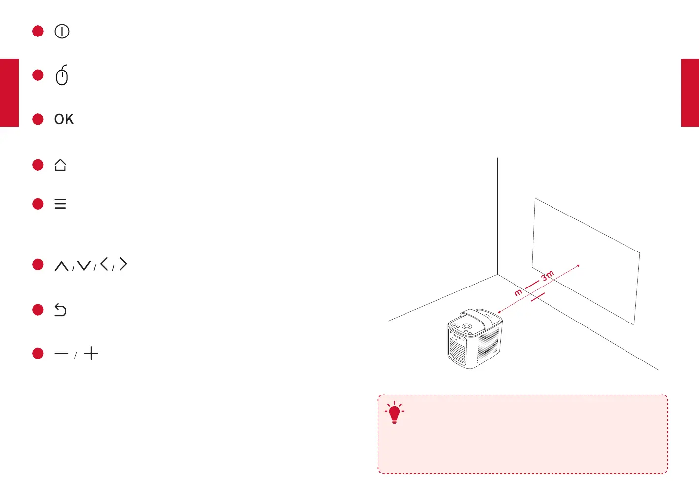 Projektor und der Projektionsfläche muss mindestens 1Meter und darf