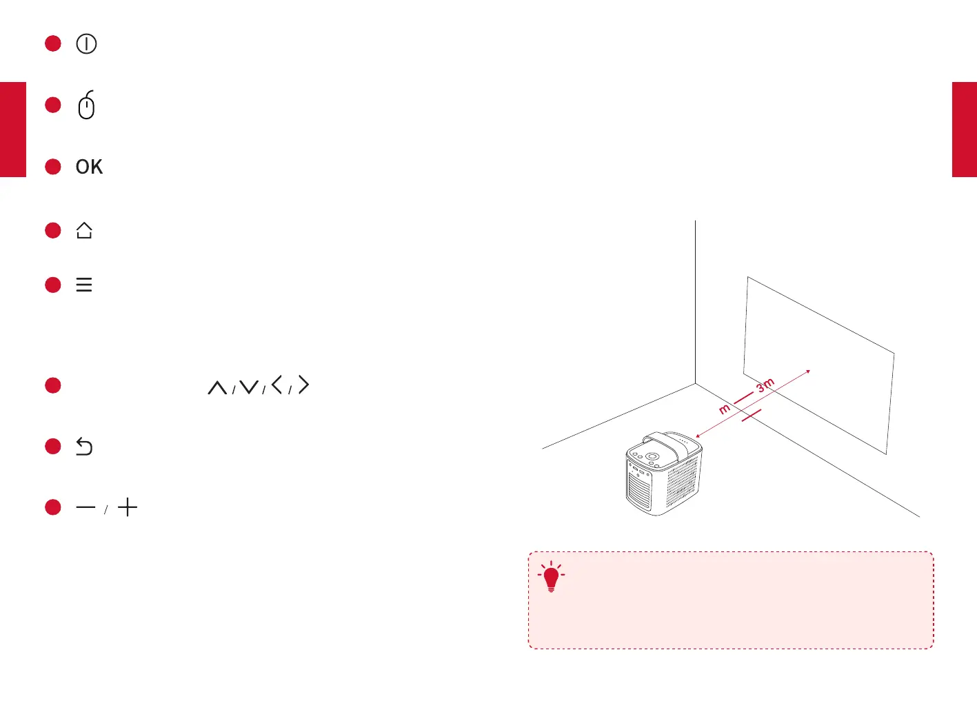 surface de projection doit être de 1mètre (39,4pouces) minimum et