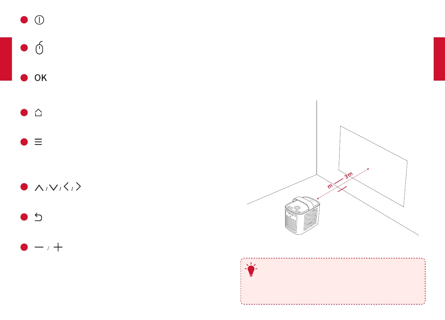 proiezione deve essere bianca e piana. La distanza tra il proiettore e