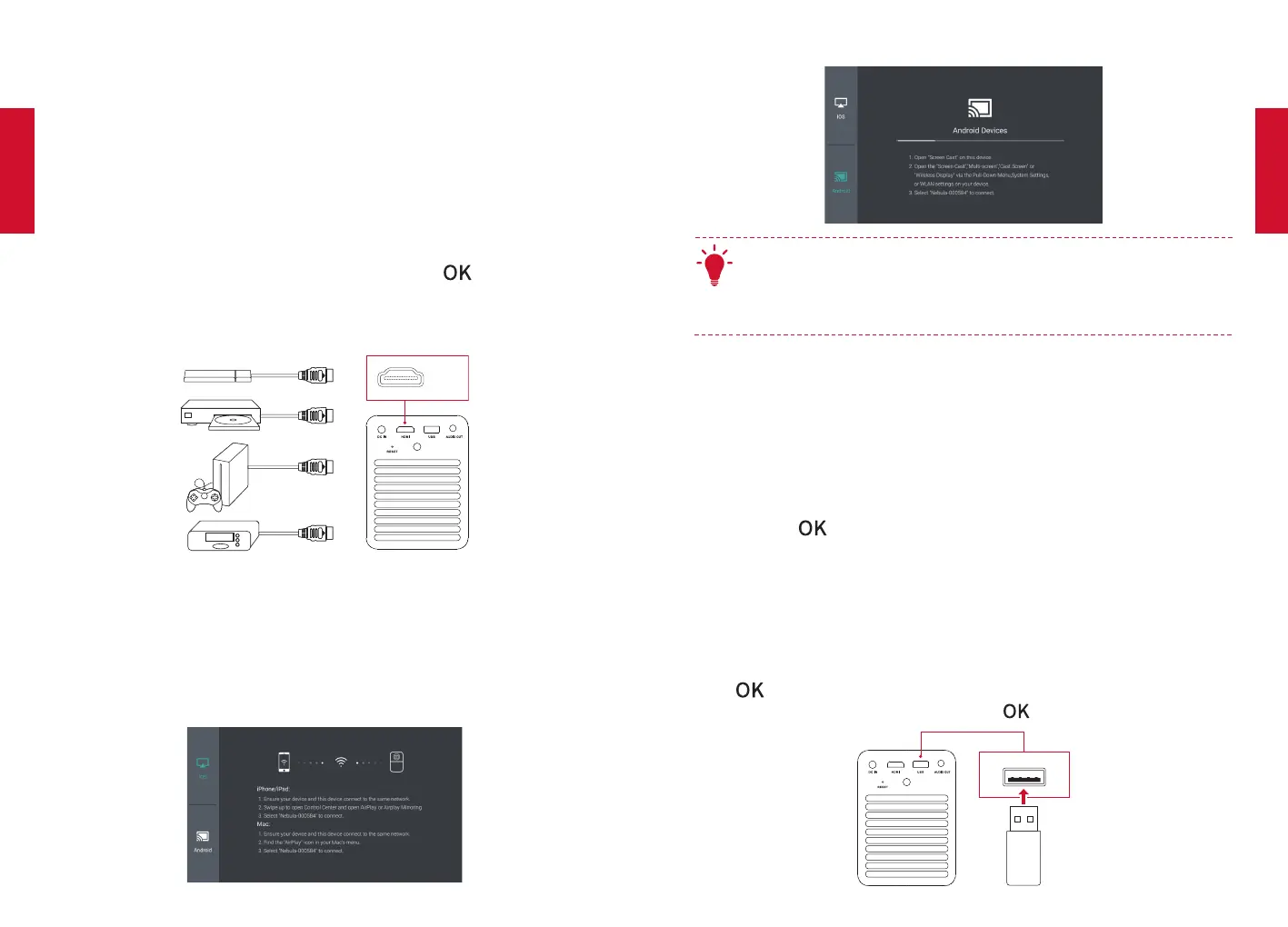 Conecte o projetor a um aparelho com saída HDMI através de um