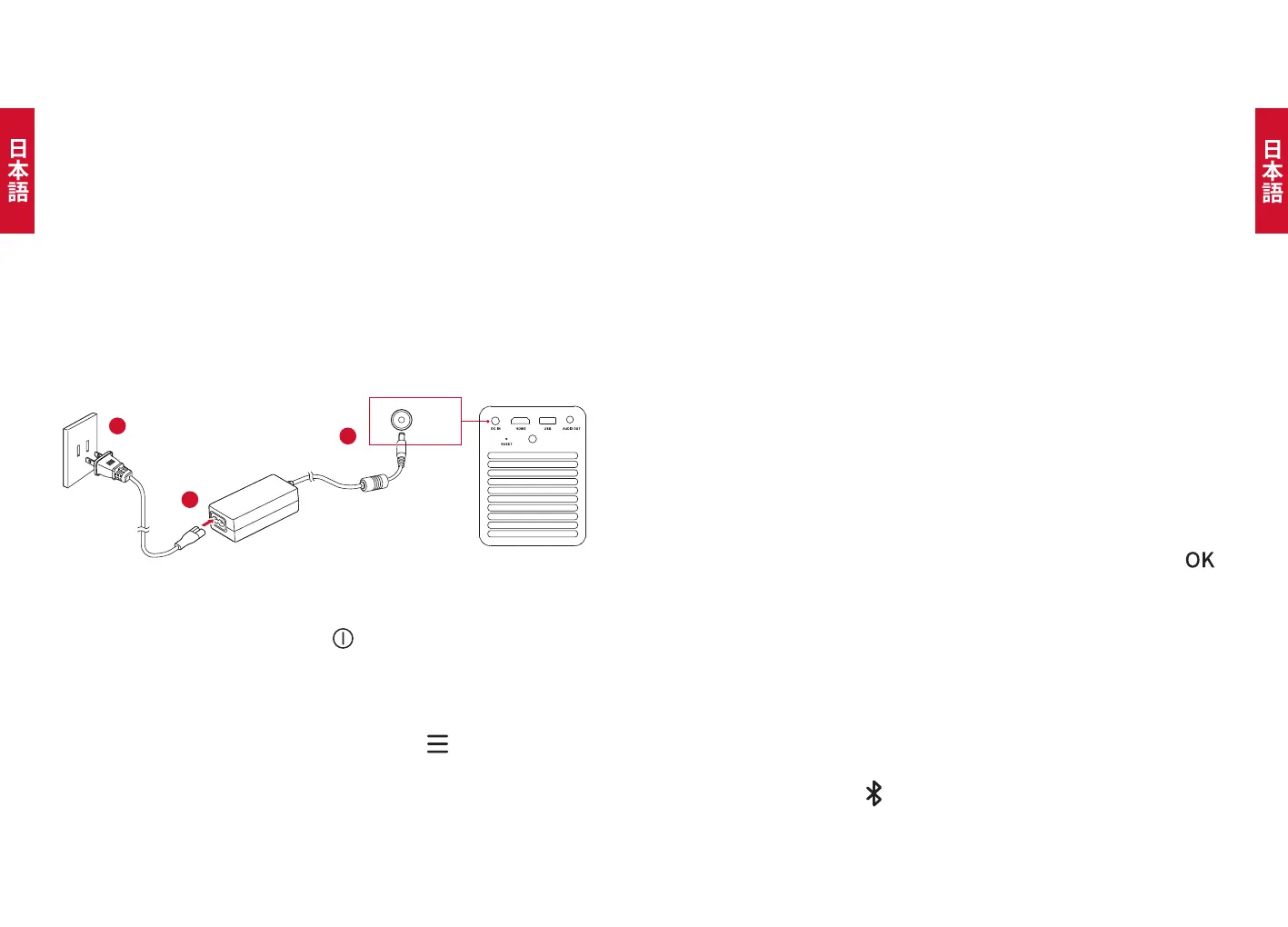 ② 付属の電源アダプターと電源コードを使用してプロジェクターを