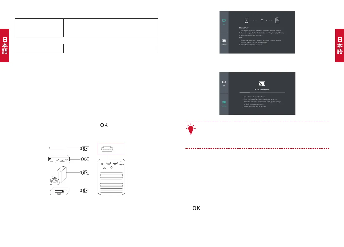 このプロジェクターは、TV ボックス、TV スティック、DVD プレーヤー、
