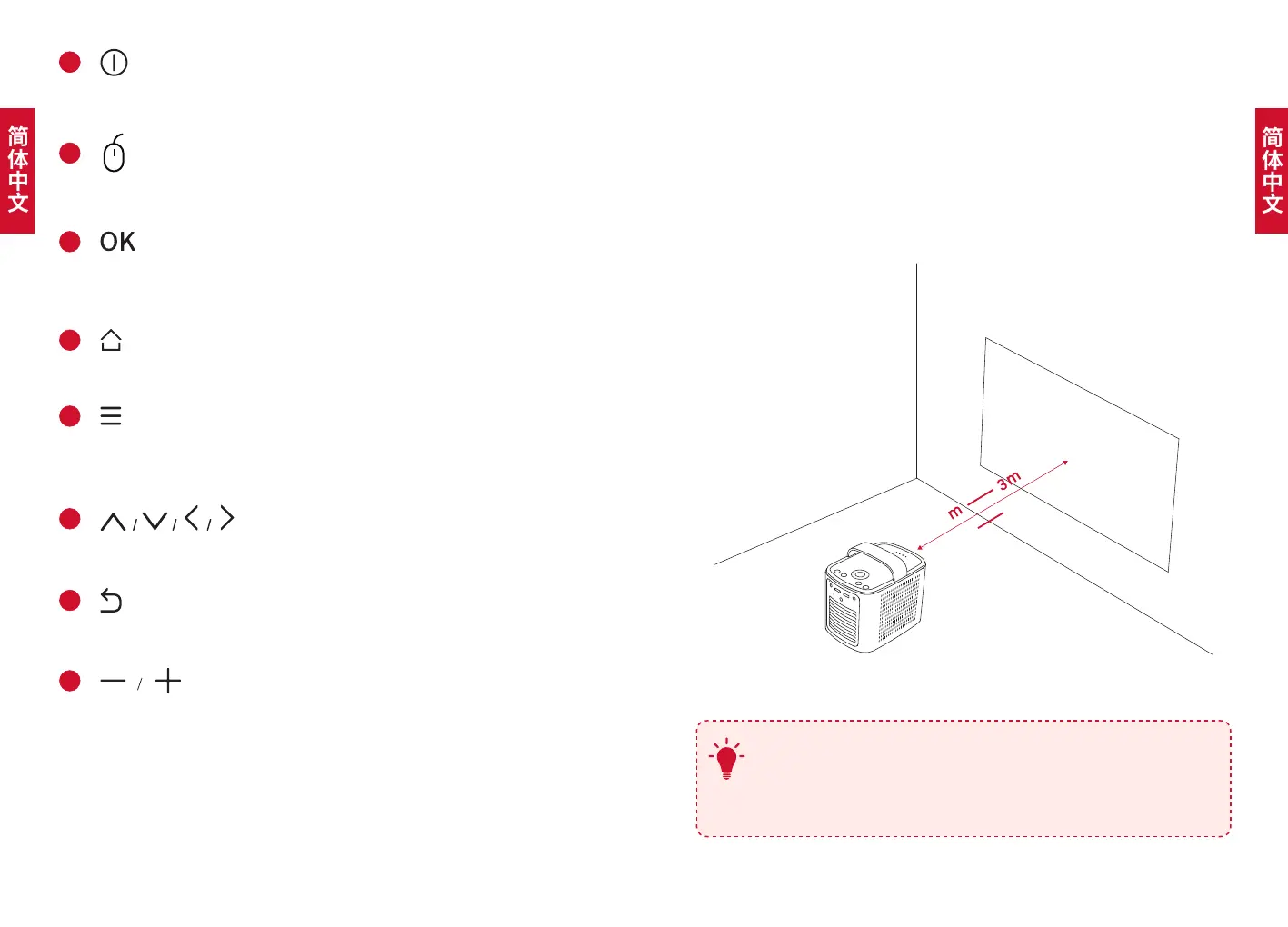 影面应当是白色且平滑。投影仪到投影面之间的距离必须是 1 米(39.4