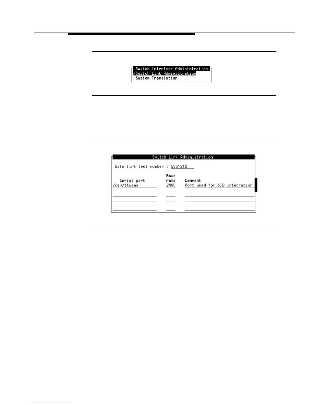 option, you see the Switch Link Administration screen as shown in Figure