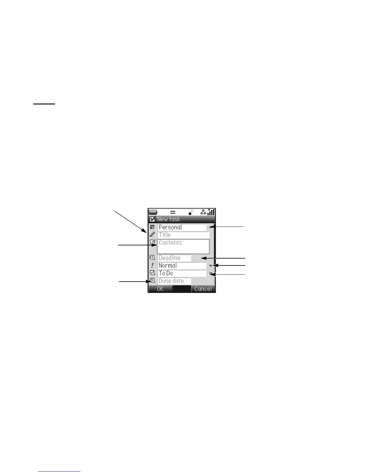 In To Do list, press the SK1 (New), or press the Options menu key and select New to open the new task screen. Press the