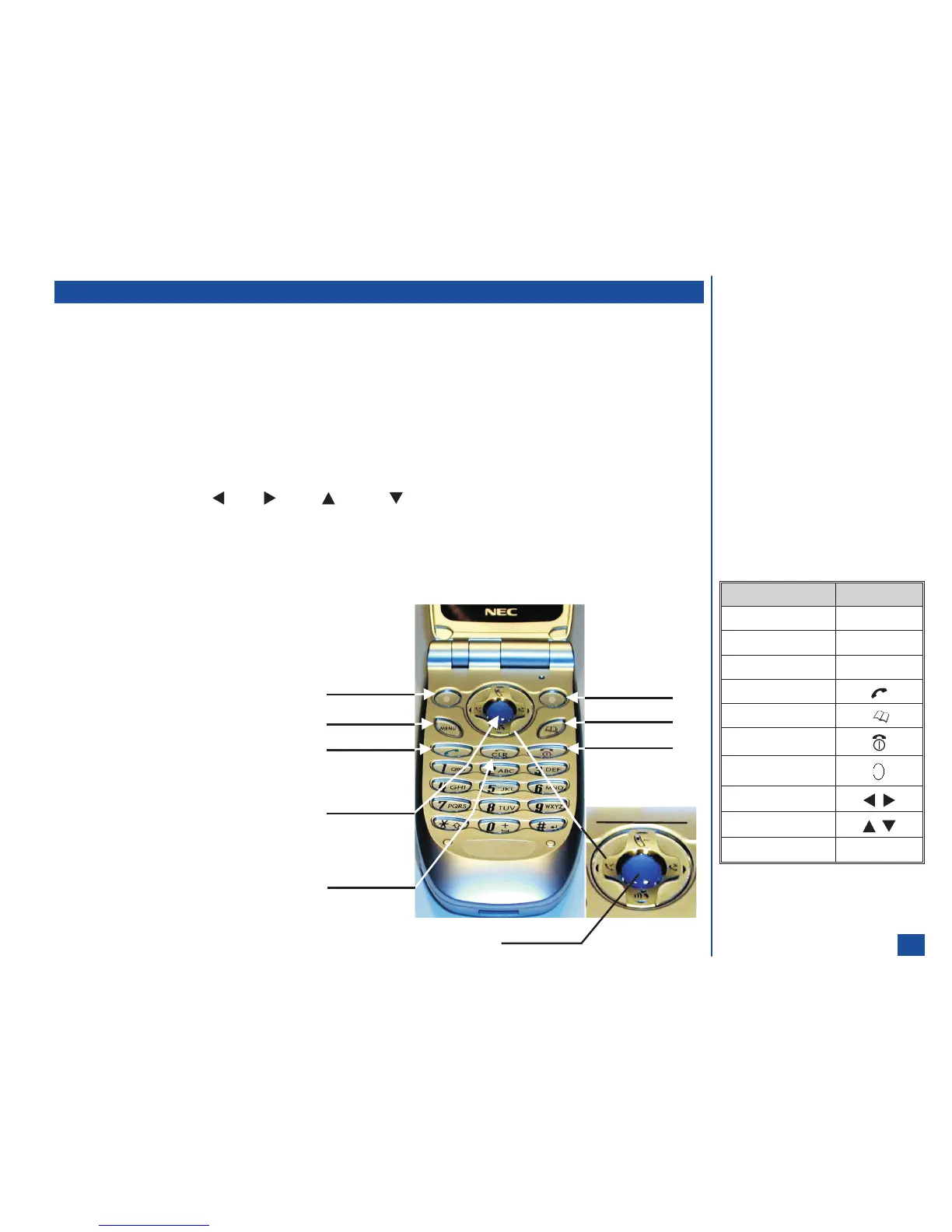 The navigation key symbols are: (Left), (Right), (Up), and (Down). The navigation keys are located on the outer edge of