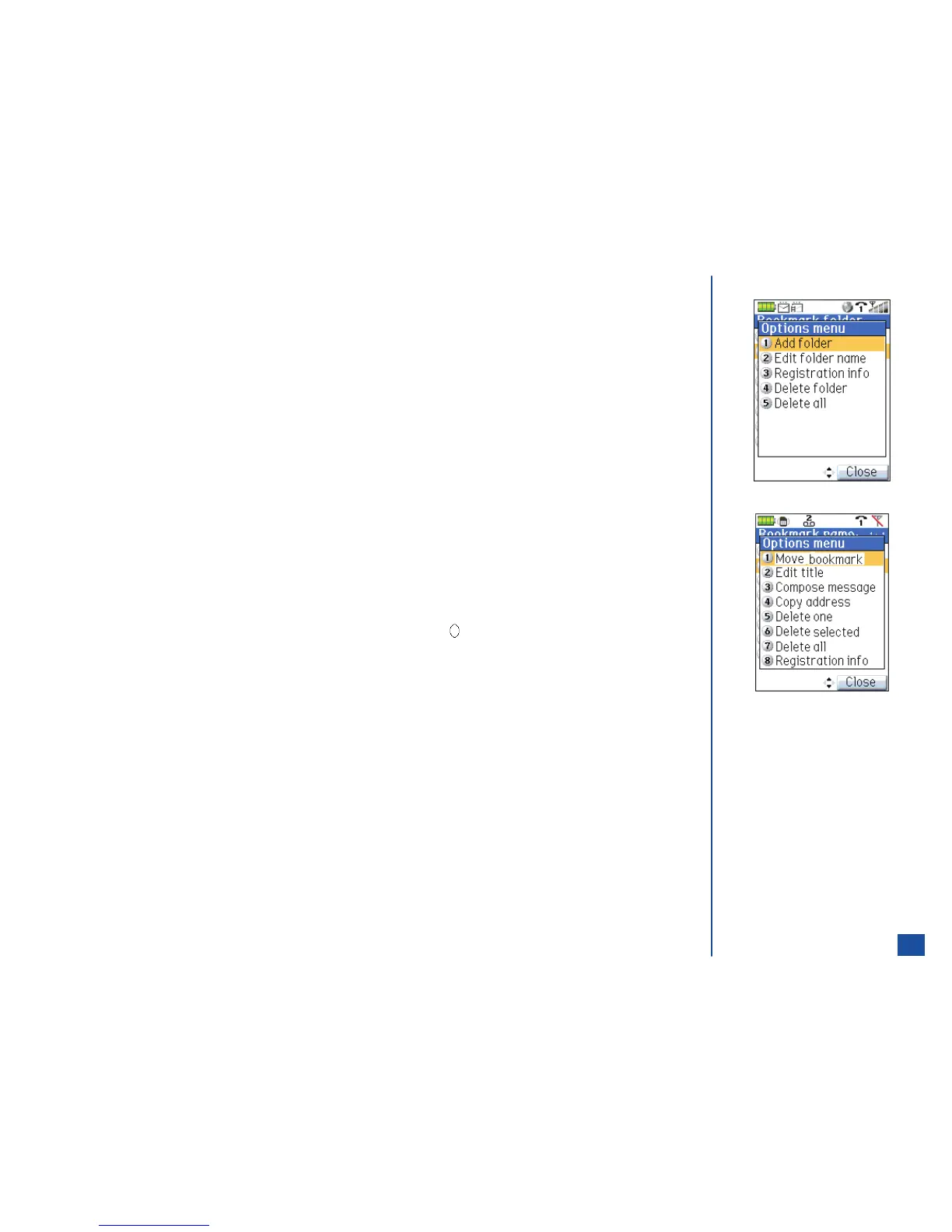 Use the navigation keys to highlight the desired bookmark folder, press MENU (Options Menu) and input the option number to