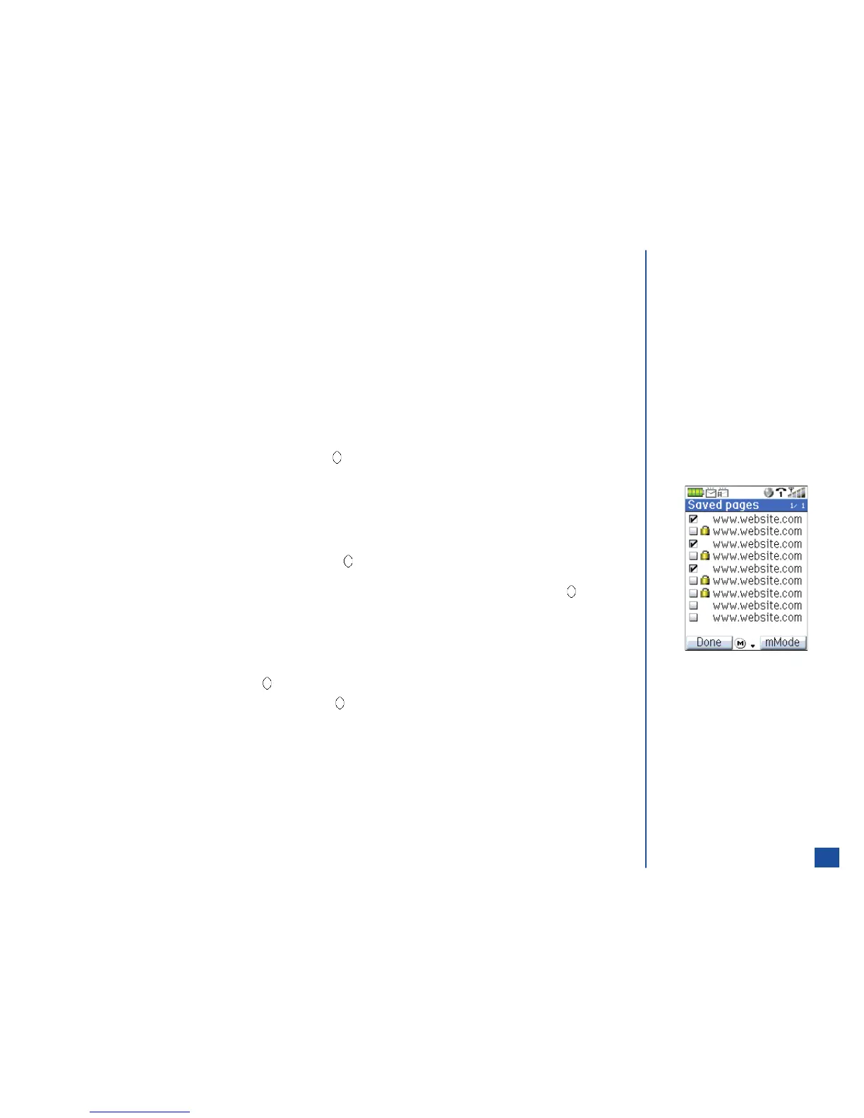 Use the navigation keys to highlight a saved page and press (Select) to check or uncheck the box. When all saved pages to