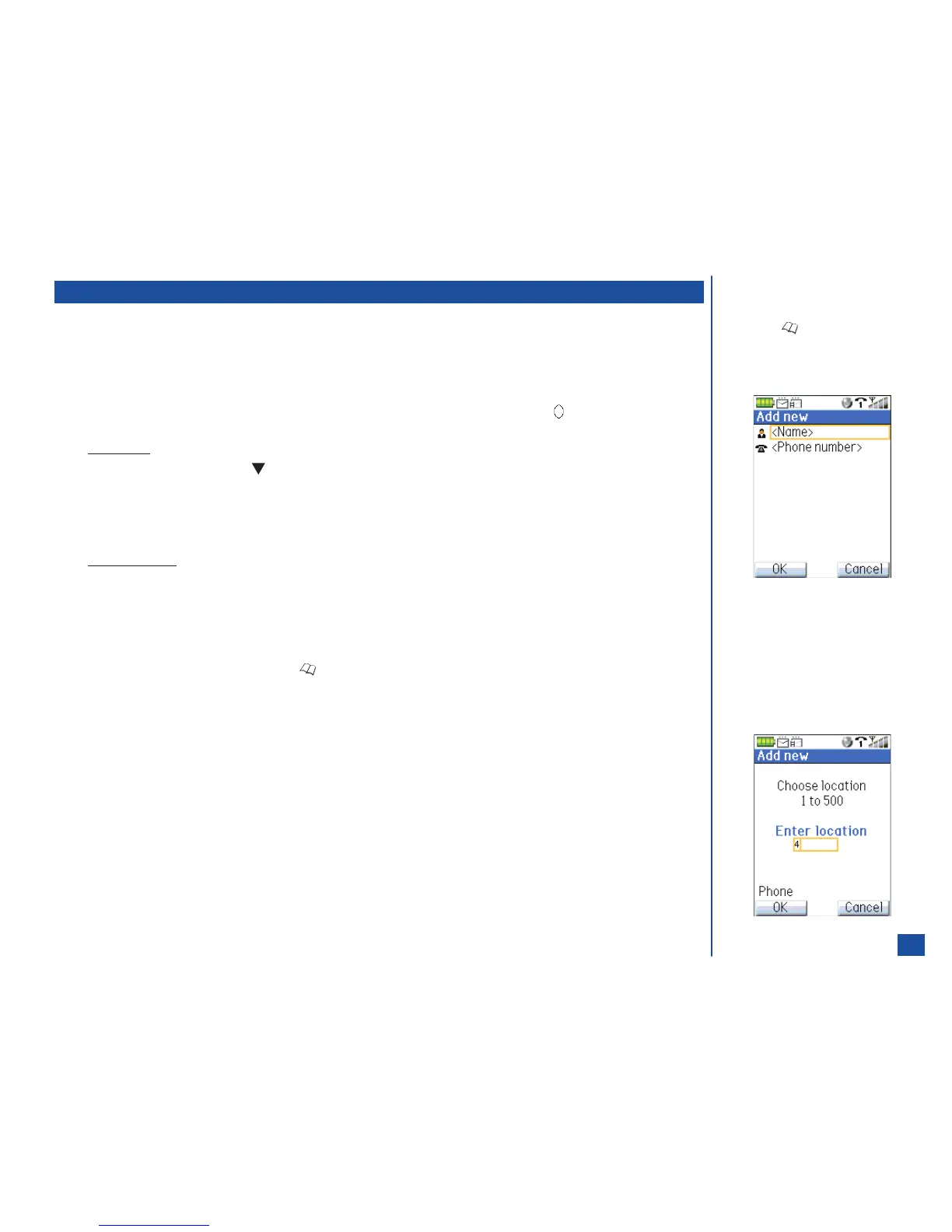 Press Softkey 1 (OK) to save the name/number entry in the suggested location of the selected phonebook.