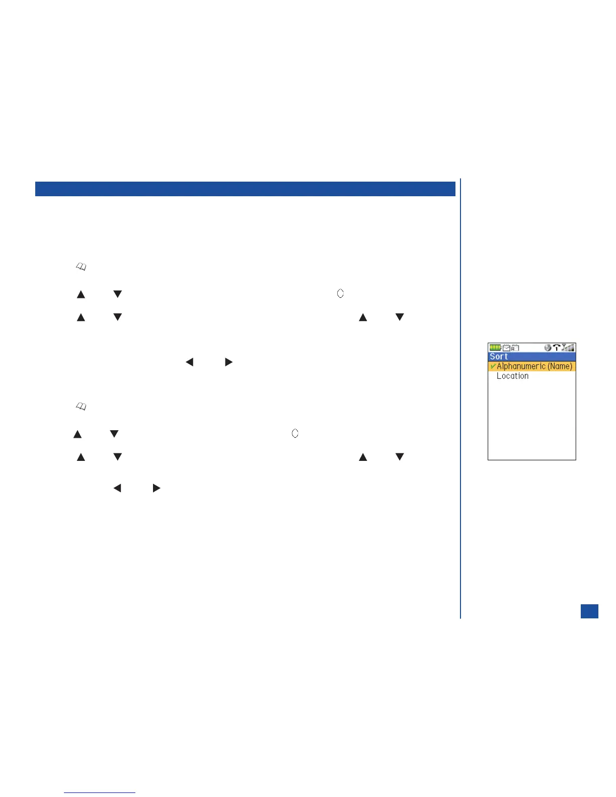 The sort default for the phonebook is alphanumeric. Each time the wireless phone is powered-on, the sort is alphanumeric.